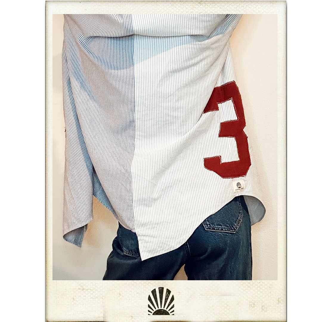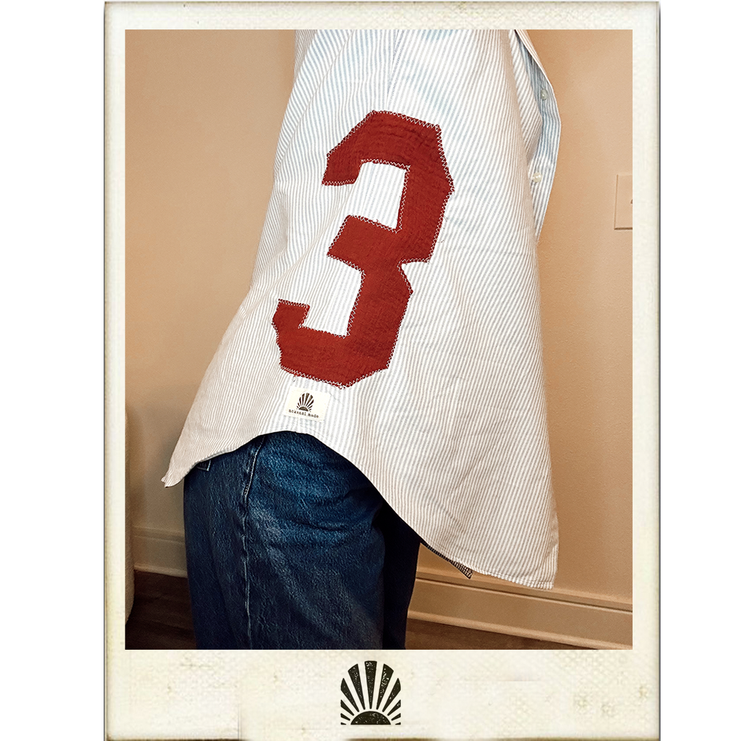 This mckenzi (re)made adaptive field of dreams shirt celebrates those who find their home on the baseball field and those who dream with no limits. The cf placket and cuffs of this shirt have magnetic snaps to aid those with disabilities or those who have trouble fastening buttons. Each shirt is adorned with numbers inspired by vintage baseball jerseys.